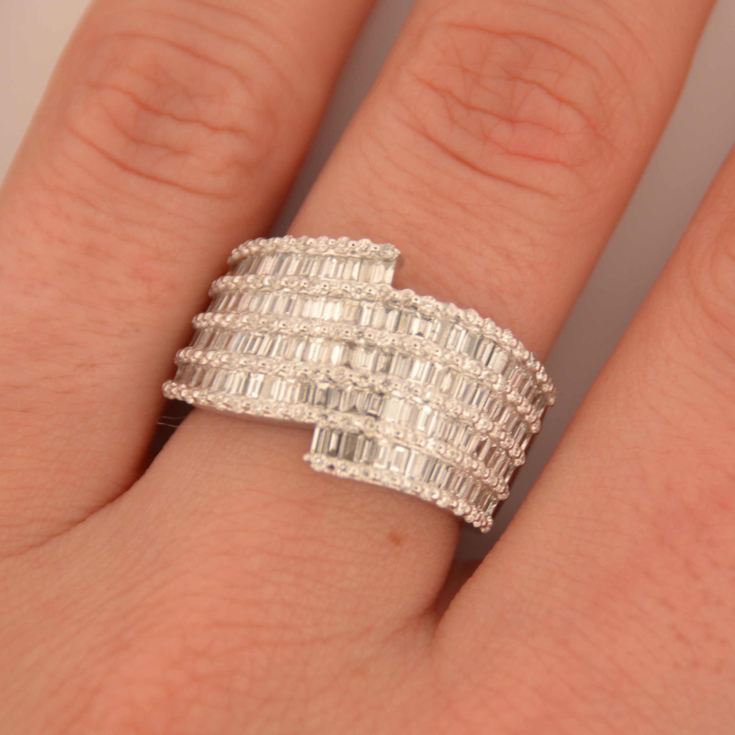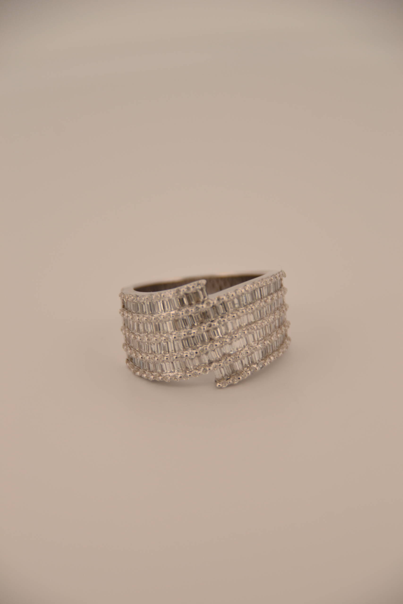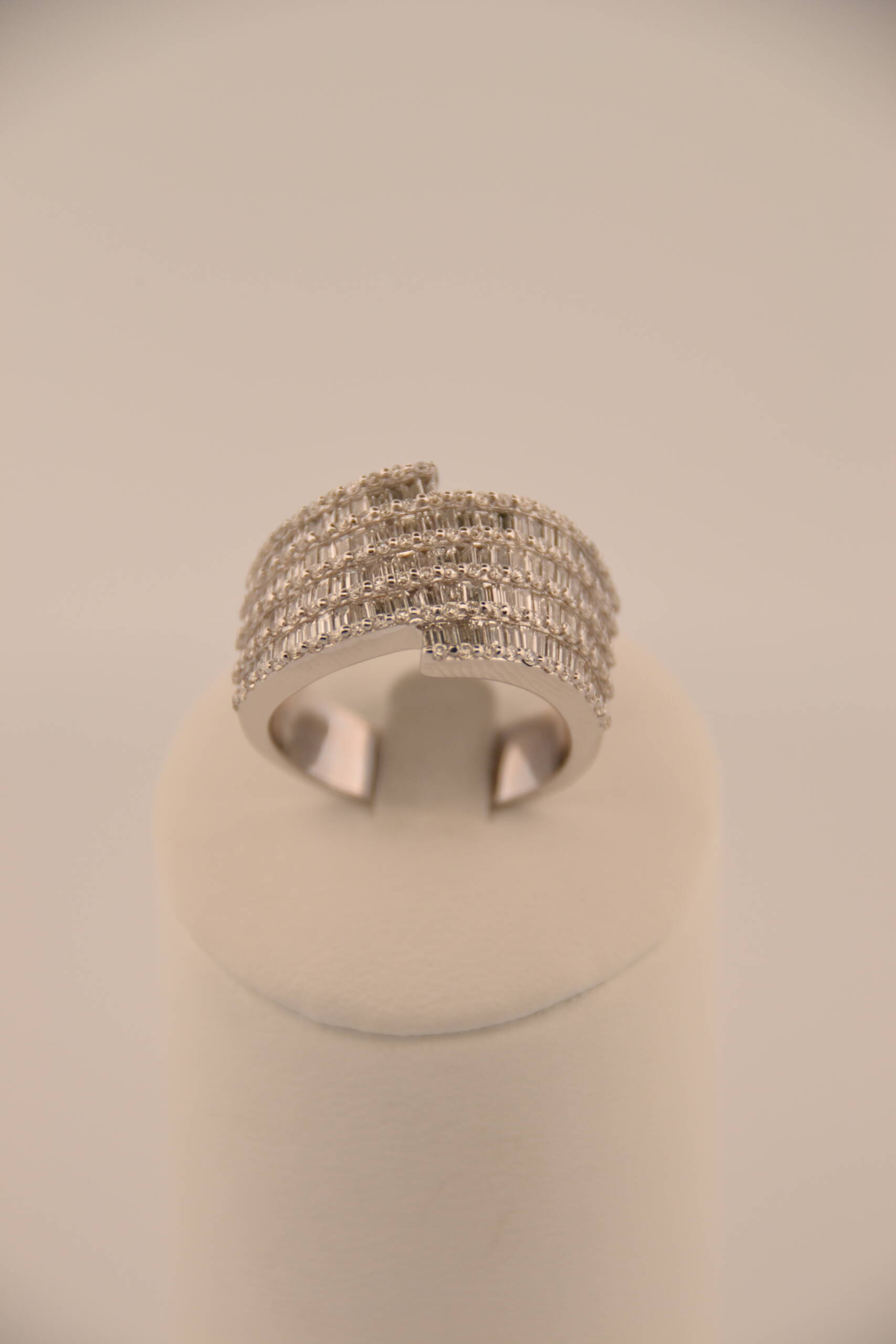 Bague diamants baguette 2.40 ct et rondes 0.5 ct serti invisible.