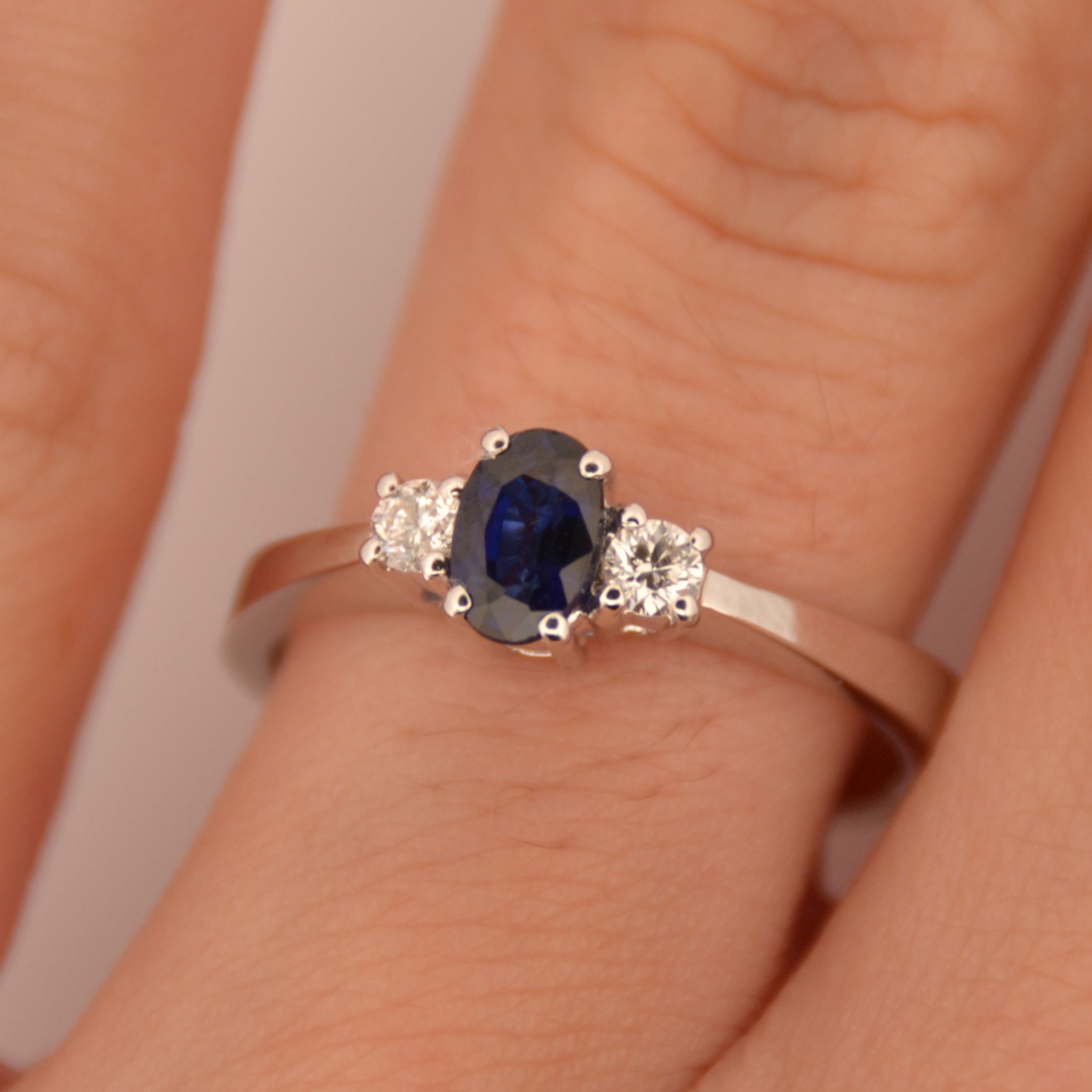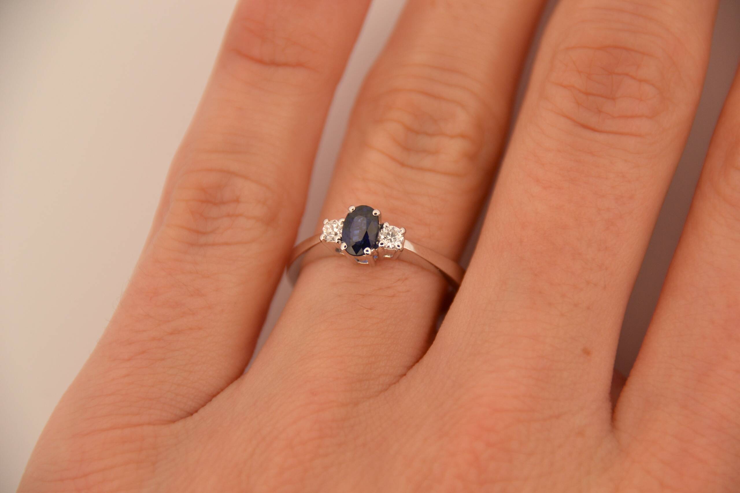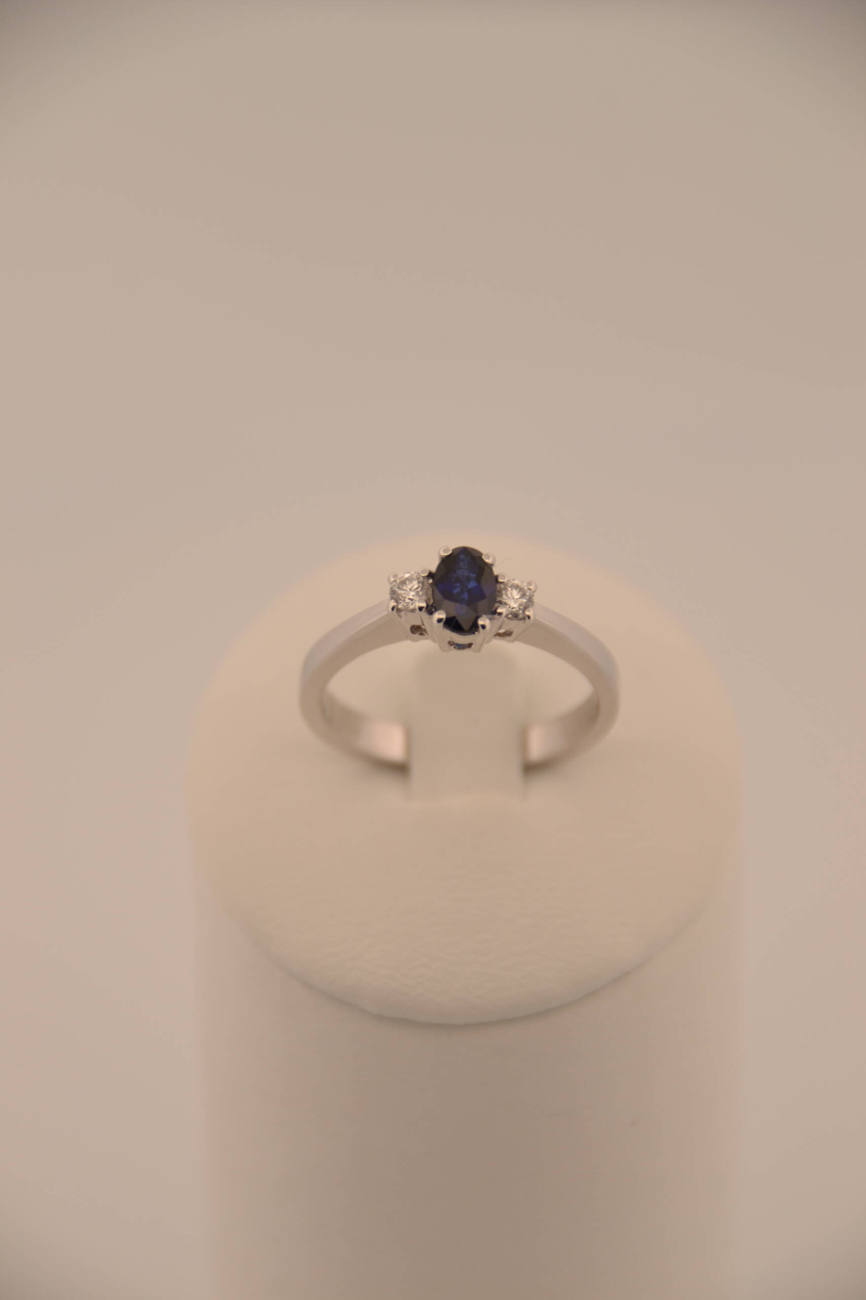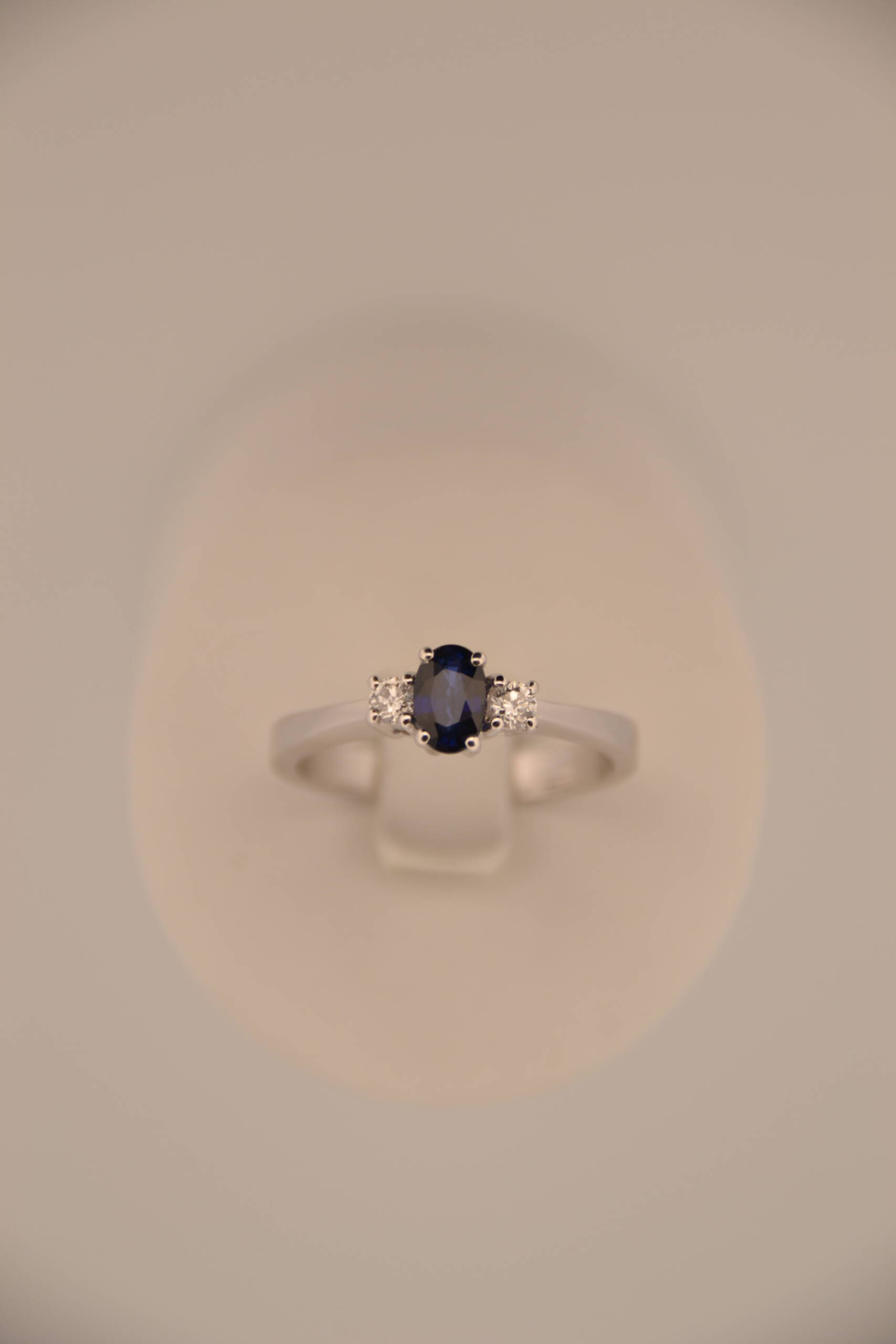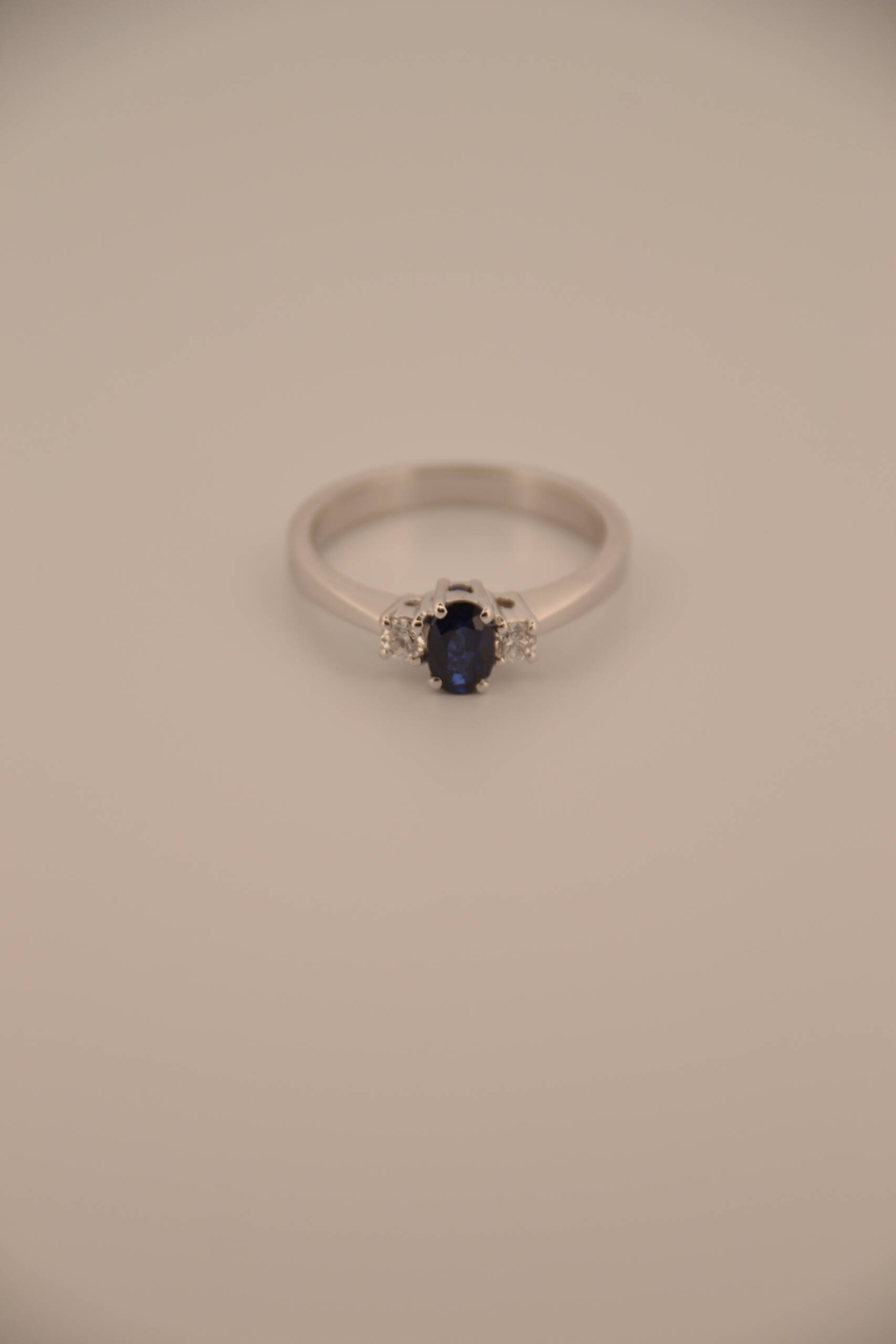 Bague saphir ovale 0.40 ct et 2 diamants 0.14 ct qualité G SI1