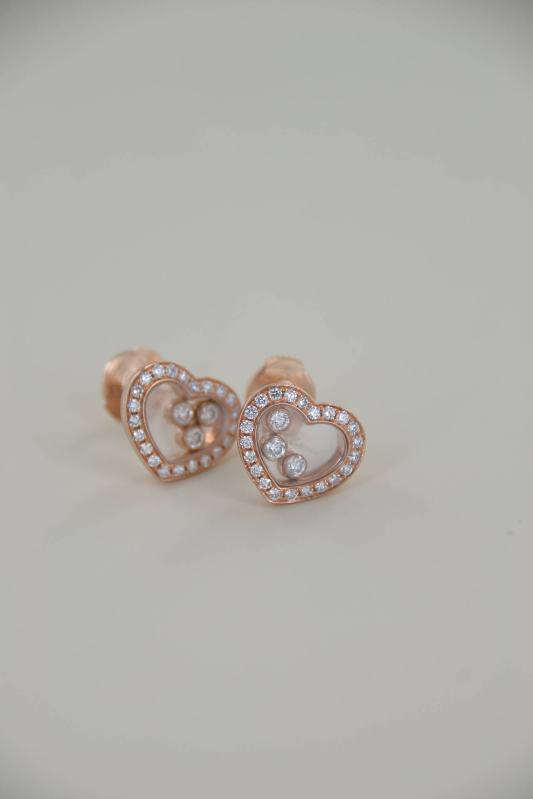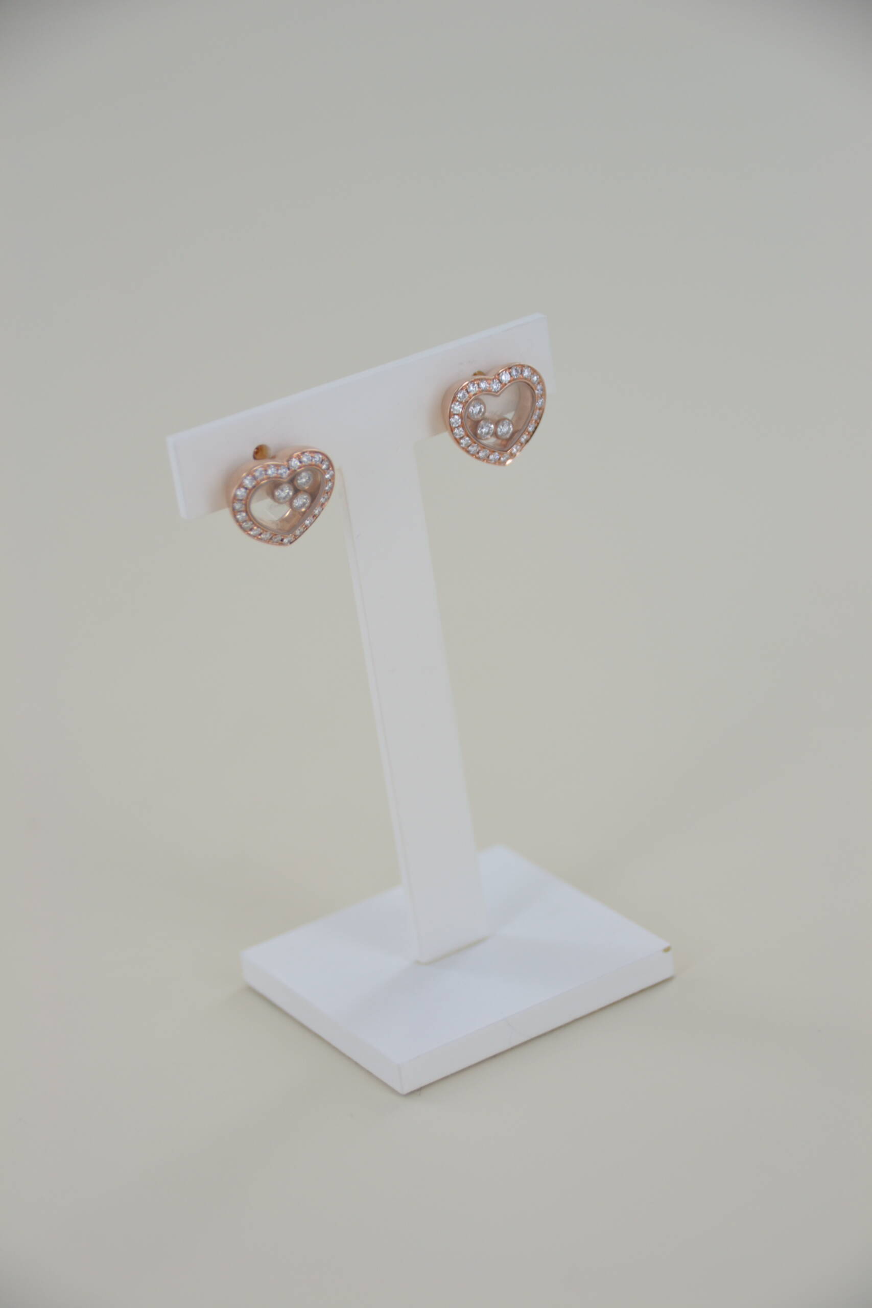 Boucle d’oreilles CHOPARD Happy Diamonds Icons or 18 ct rose éthique ; Système ALPA. Sans papiers ni coffret.